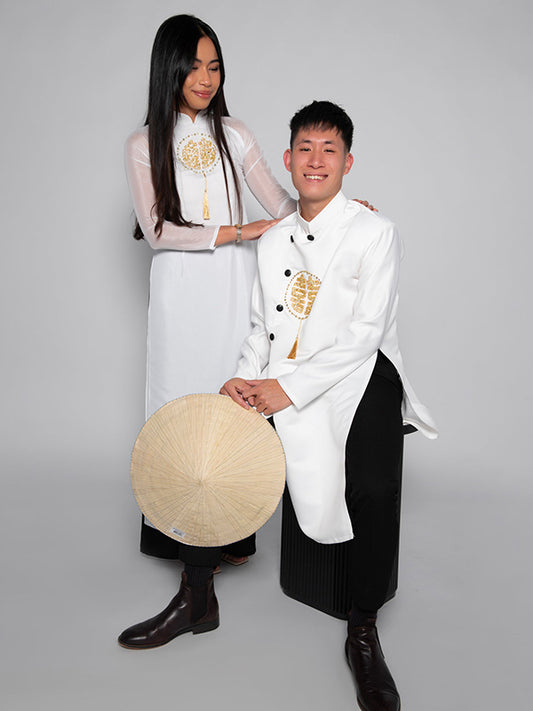 White Silk Women's & White Silk Men's Wedding Vietnamese Aodai