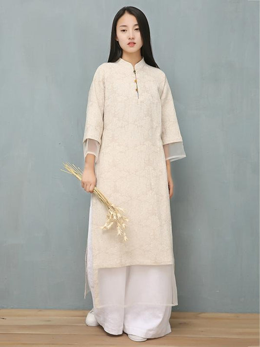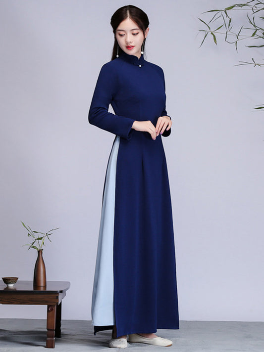 Ao Dai Vietnamese Dress Long Sleeves Lapel Aodaistyle