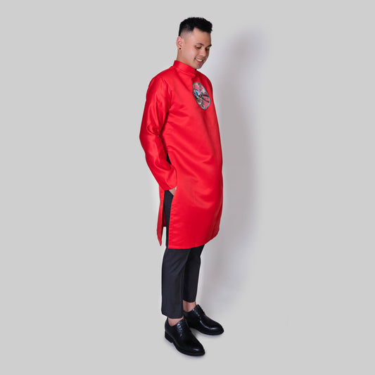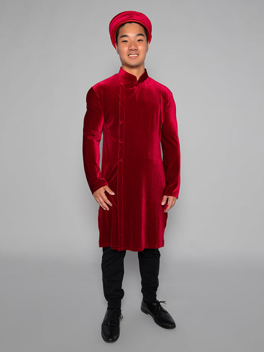 Red Velvet Plain Men's Vietnamese Ao Dai Coat