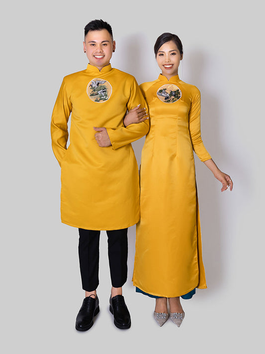 Father's Yellow Silk Vietnamese Ao Dai Coat