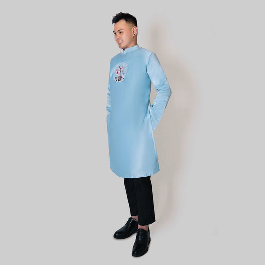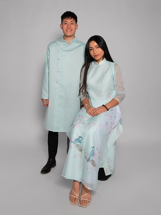 Father's Light Blue Silk Vietnamese Ao Dai Coat