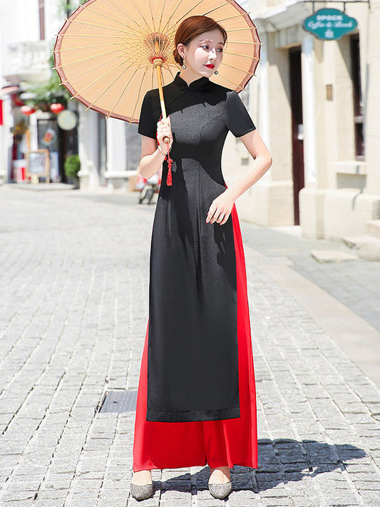 Vietnamese Ao Dai Dress Short Sleeves Aodaistyle