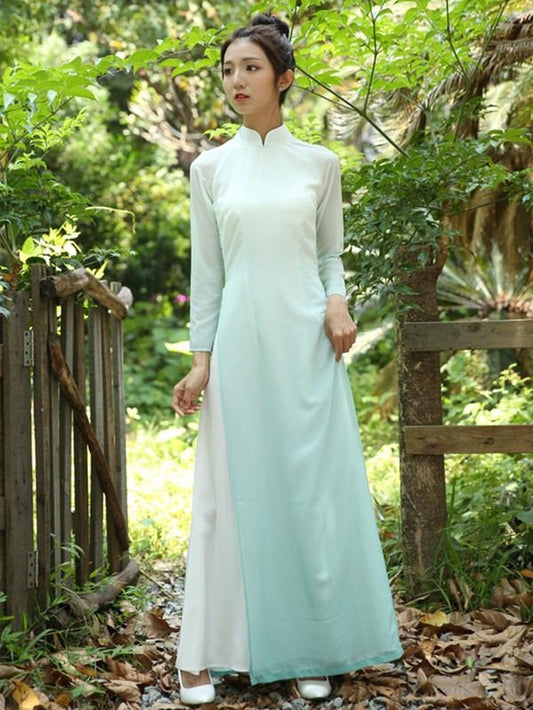 Ao Dai Vietnamese Dress Long Sleeves Aodaistyle Gradient Green Split Side