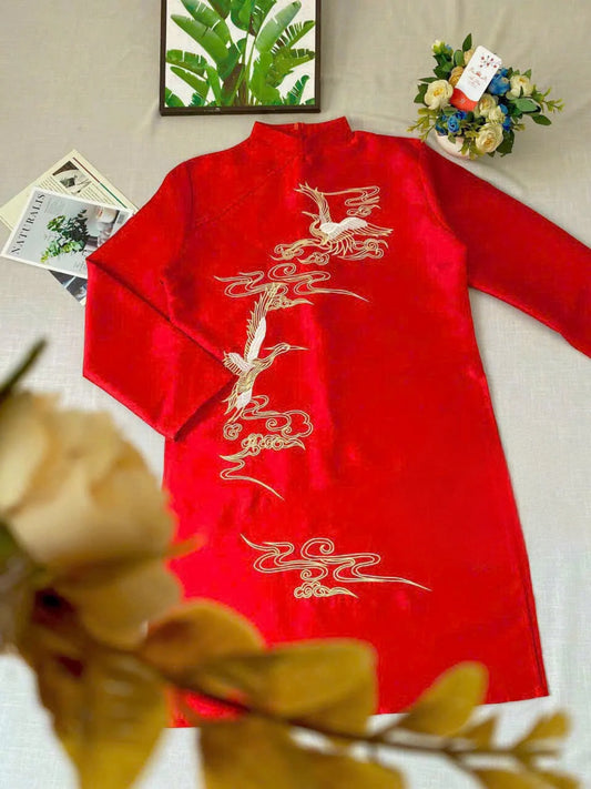 Ao Dai Vietnam Men Red Hac Ao Dai Set