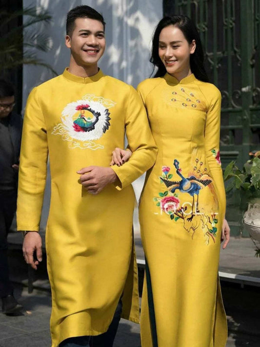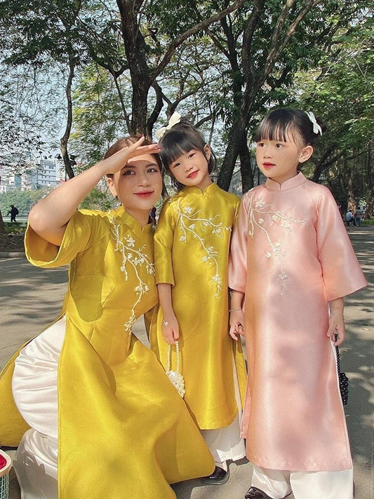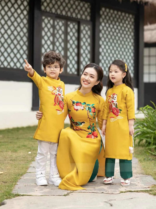 Family Ao Dai Yellow Embroidery Ao Dai Set Ao Dai Vietnam