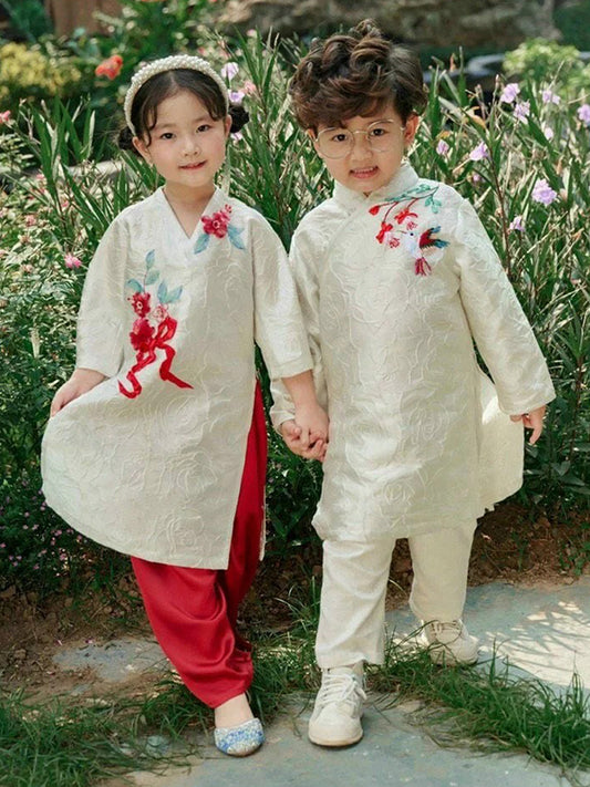 Family Ao Dai White Embroidery Ao Dai Dress Includes One Ao Dai Top And Pants