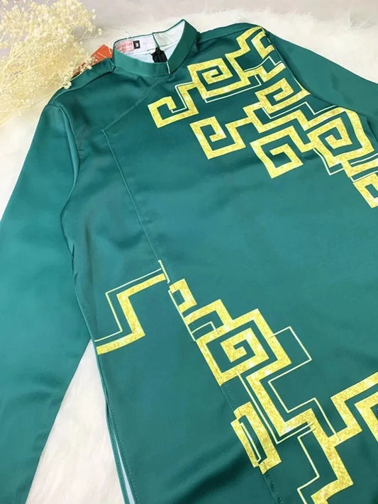 Family Ao Dai Kids Emerald Green Printed Includes One Ao Dai Top And Pants