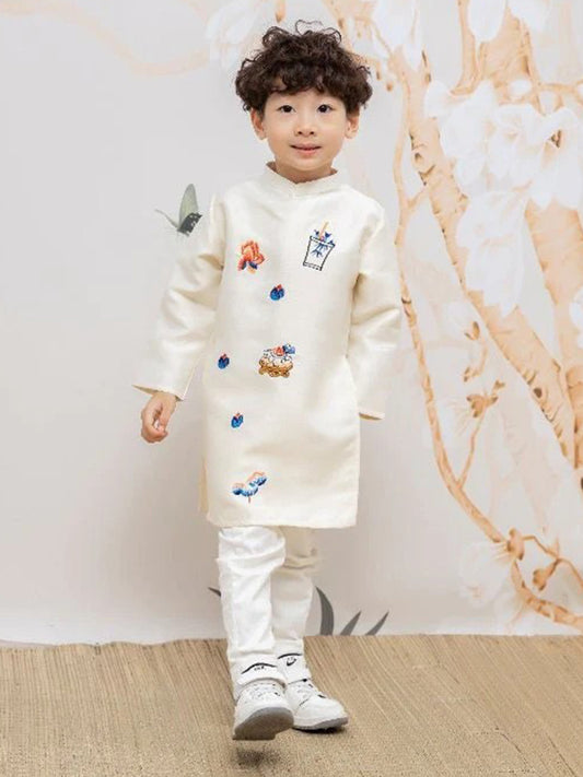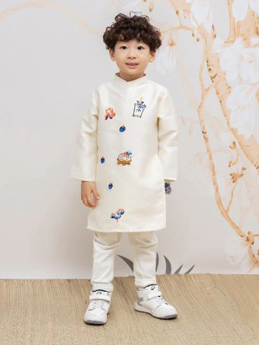 Kids Ao Dai Boy White Cute Patterns Ao Dai Top Only