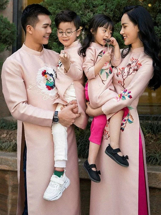 Family Ao Dai Pink Blush Embroidery Men And Boy Ao Dai Top