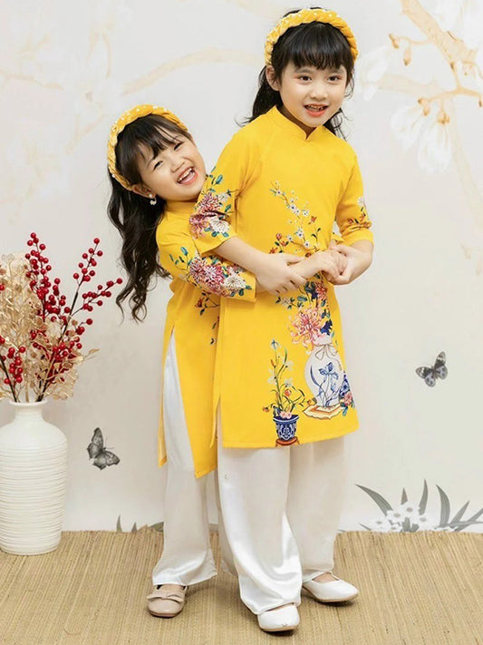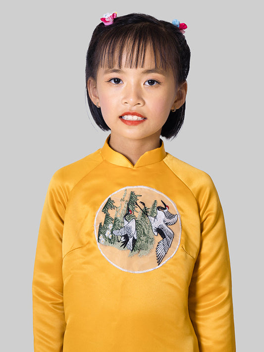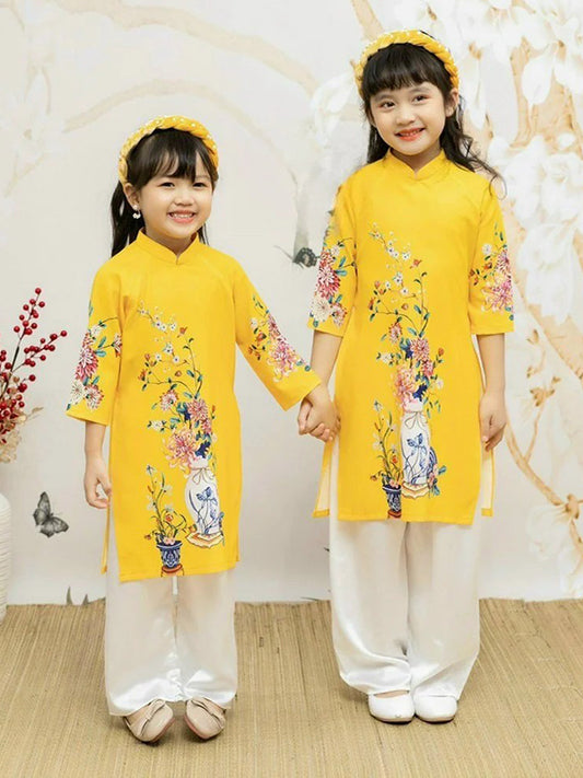 Girl's Yellow Silk Vietnamese Ao Dai Dress