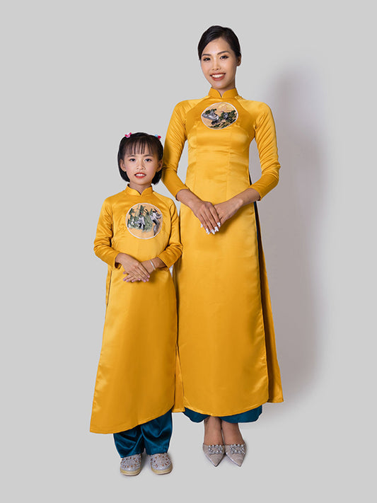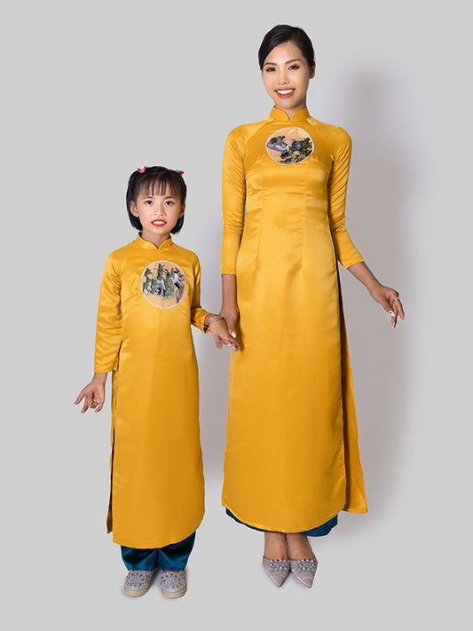 Mother & Daughter's Yellow Silk Vietnamese Ao Dai Dress