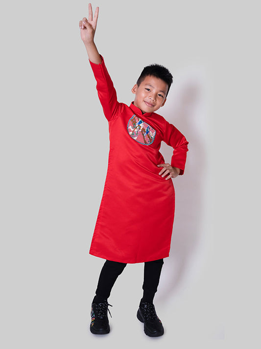 Kids Ao Dai Boy Red Ao Dai Top Only