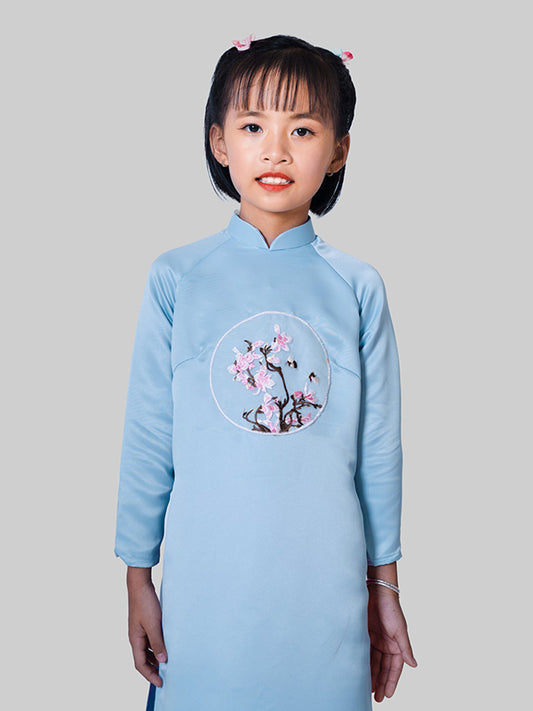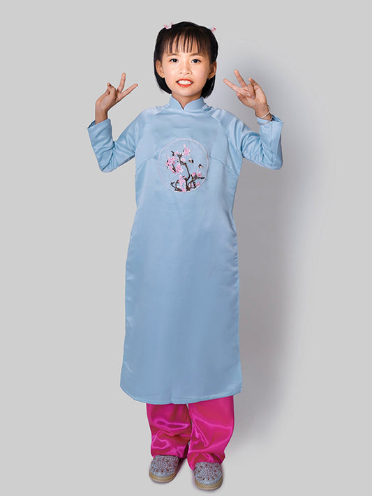Girl's Light Blue Silk Vietnamese Ao Dai Dress