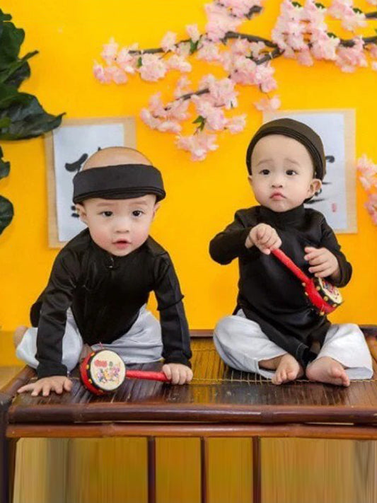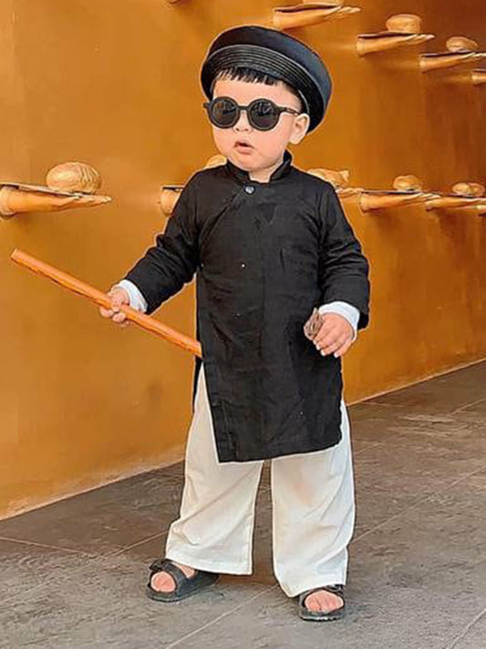 Kids Ao Dai Boy Ao Dai Set Black Includes One Ao Dai Top And Pants 1 Matching Headband