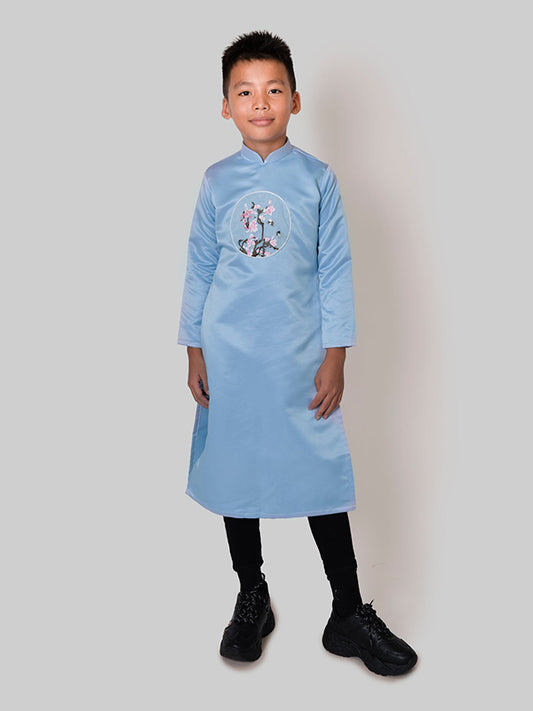Boy's Light Blue Silk Vietnamese Ao Dai Coat