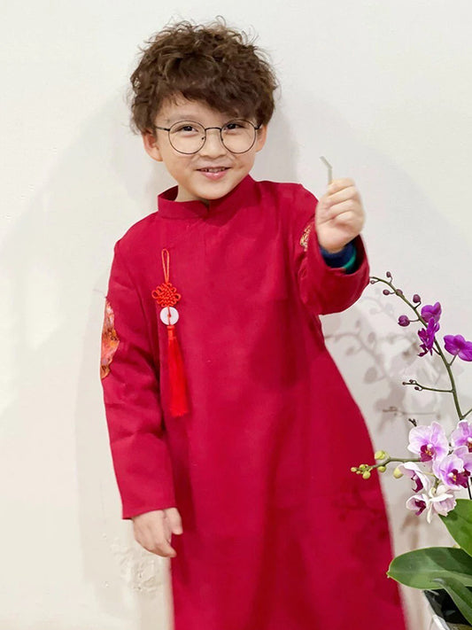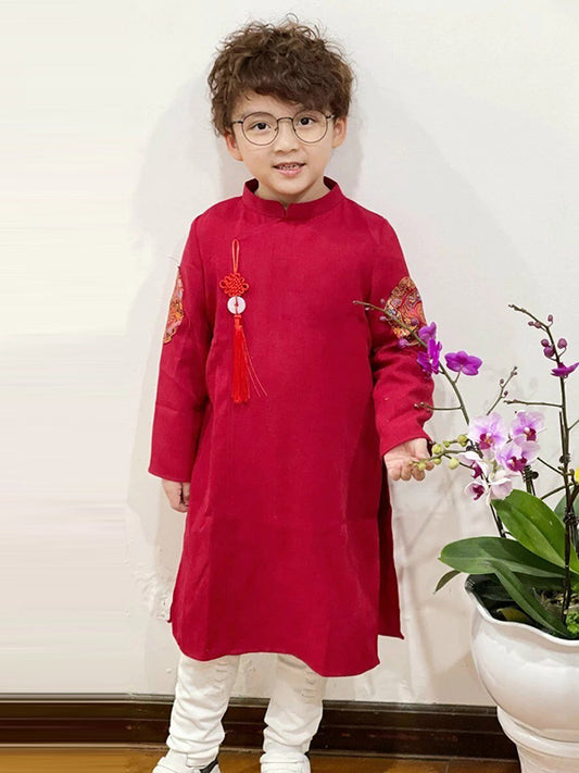 Boy's Red Silk Vietnamese Ao Dai Coat