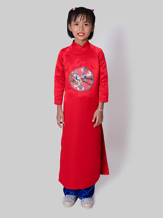 Girl's Red Silk Vietnamese Ao Dai Dress