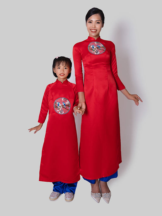 Mother & Daughter's Red Silk Vietnamese Ao Dai Dress