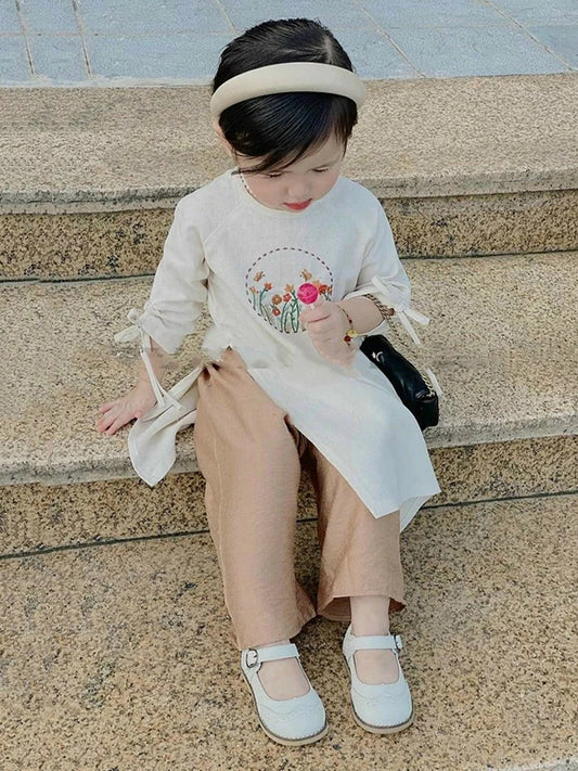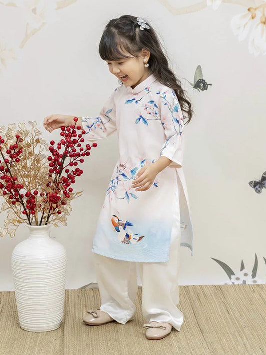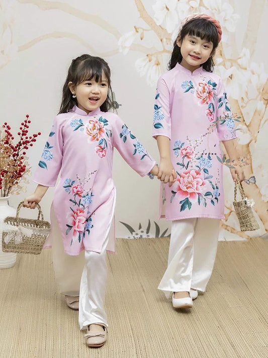 Wedding Ao Dai Girl Pink Flower Ao Dai Set