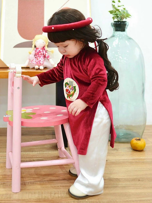 Kids Ao Dai Girl Red Velvet Ao Dai Set