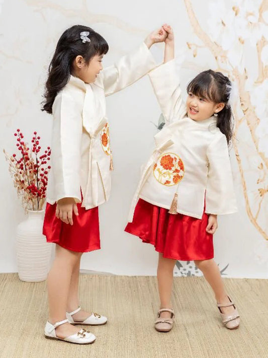 Kids Ao Dai Girl White & Red Ao Dai Set
