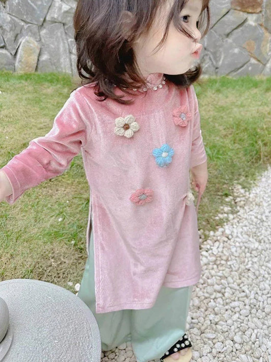 Wedding Ao Dai Girl Velvet Knit Daisy Ao Dai Dress