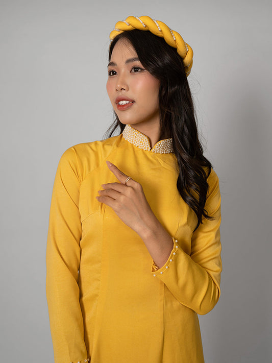 Yellow Pearl Women's Ao Dai Vietnamese Dress
