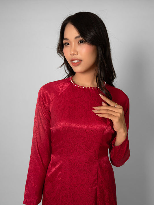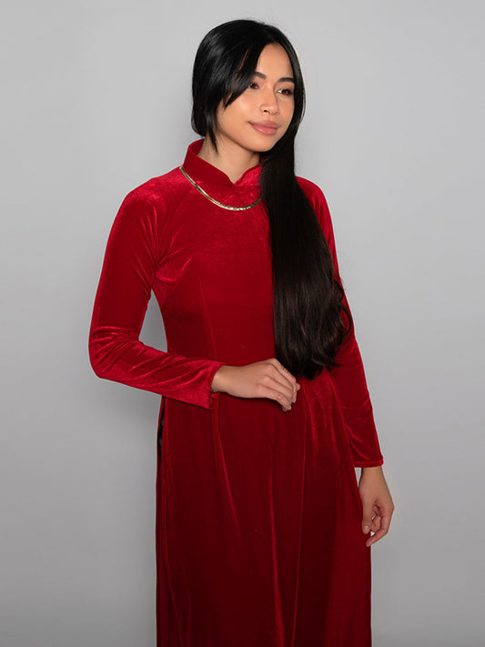 Red Velvet Plain Women's Ao Dai Vietnamese Dress