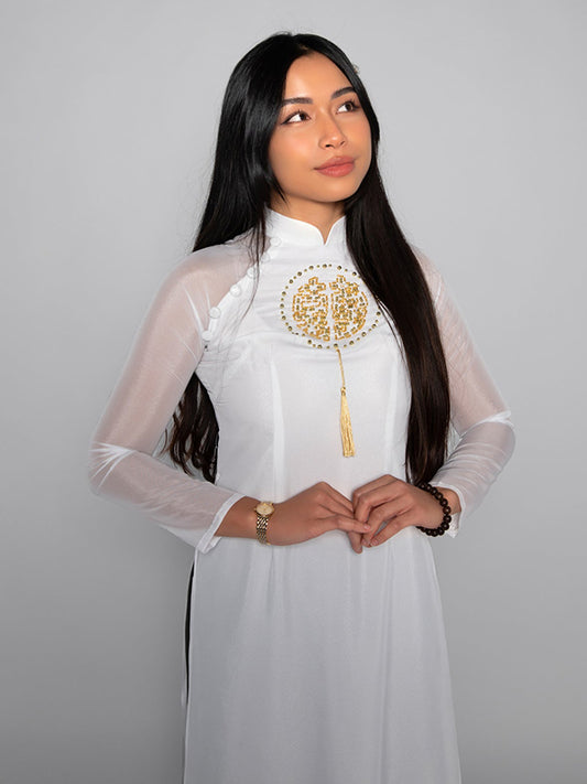 Lucky Ao Dai White Chiffon Vietnamese Dress