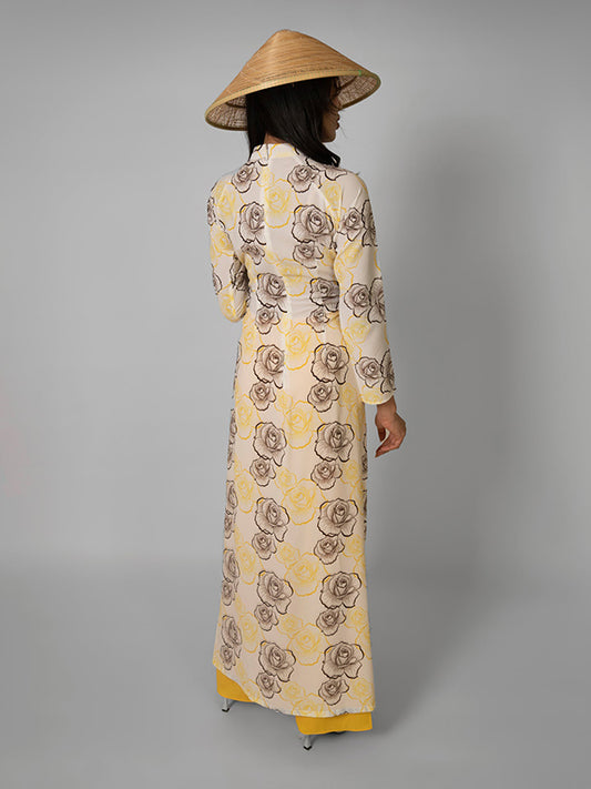 Yellow Print Satin Ao Dai Vietnamese Dress
