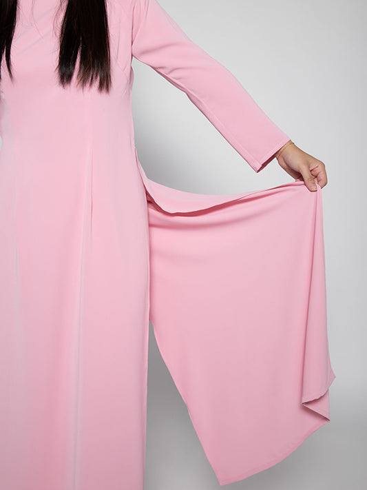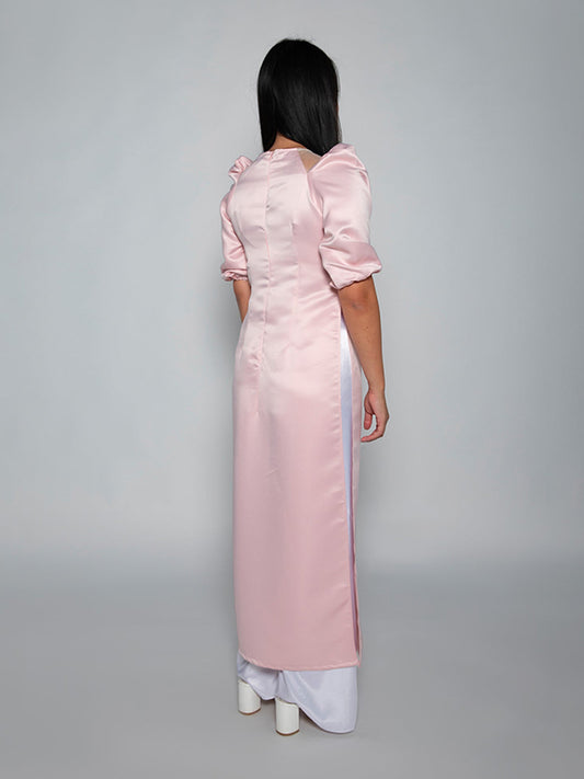 Minimalistic Pink Satin Women's Ao Dai Vietnamese Dress
