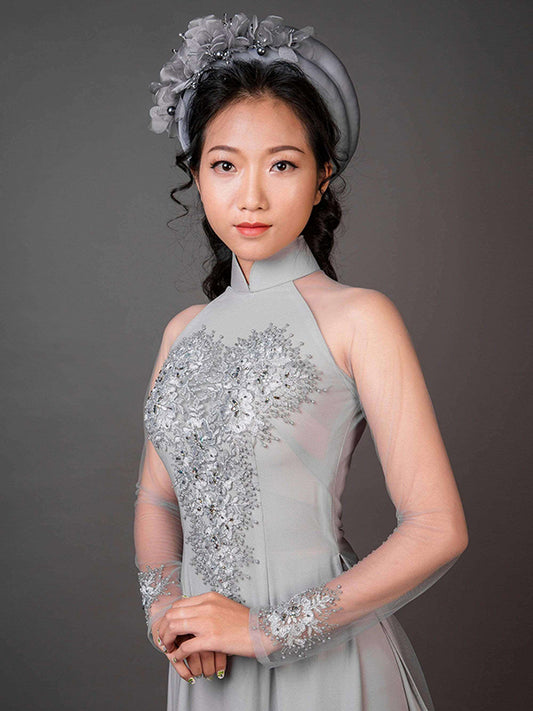 Grey Wedding Ao Dai Chiffon And Lace