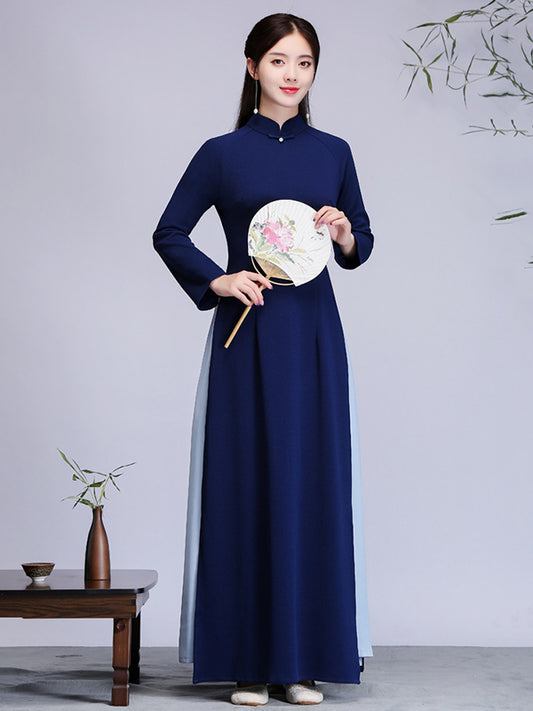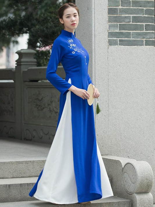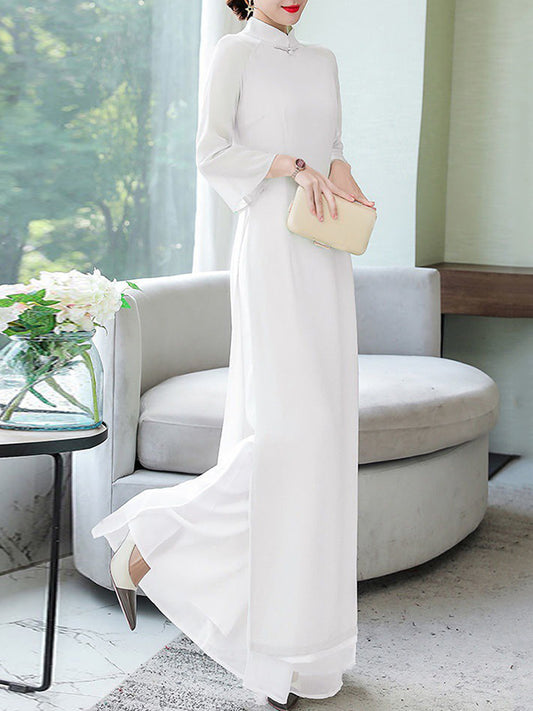 Ao Dai Vietnamese Dress Long Sleeves Lapel Aodaistyle