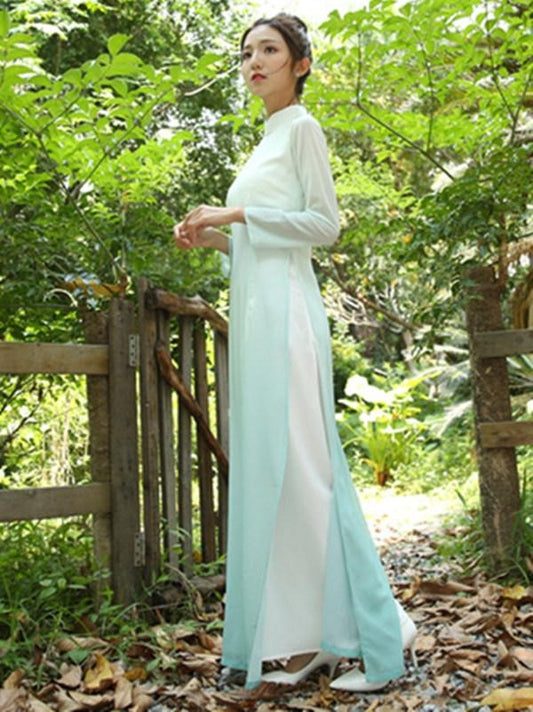 Ao Dai Vietnamese Dress Long Sleeves Aodaistyle Gradient Green Split Side