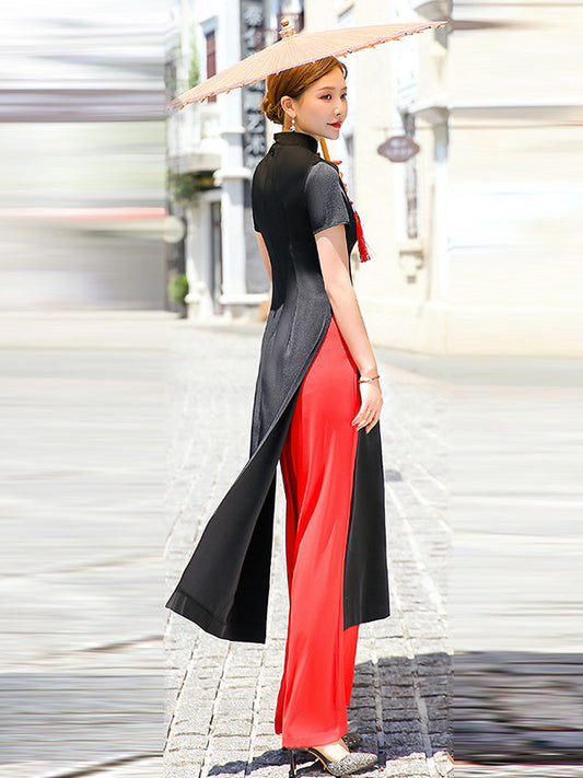 Ao Dai Vietnamese Dress Split Side Lapel Long Aodaistyle