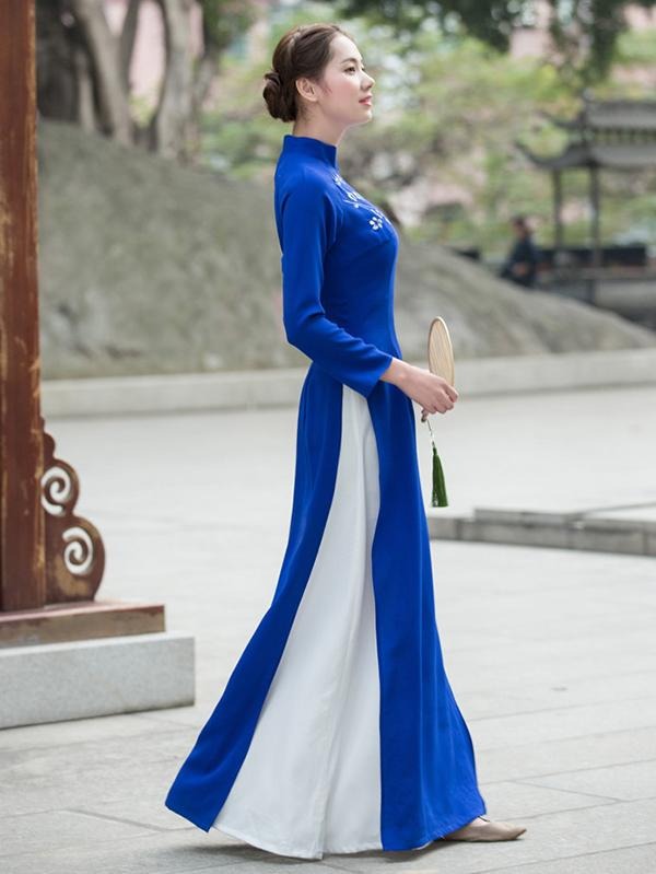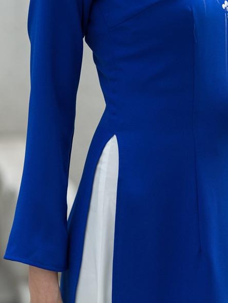 The Ao dai boasts a beautiful Iris Blue color that captures attention effortlessly. With its standing collar and diagonal placket, it exudes sophistication and grace. The long sleeves provide an elegant touch, perfect for any formal occasion. The high side slit adds a hint of allure, allowing you to showcase your confidence and style.